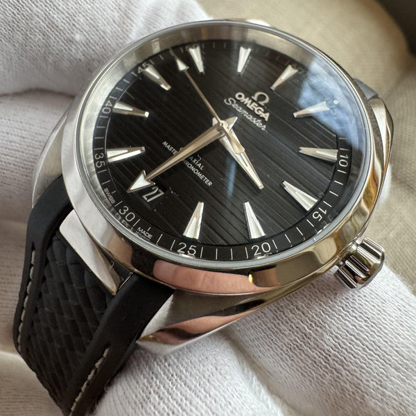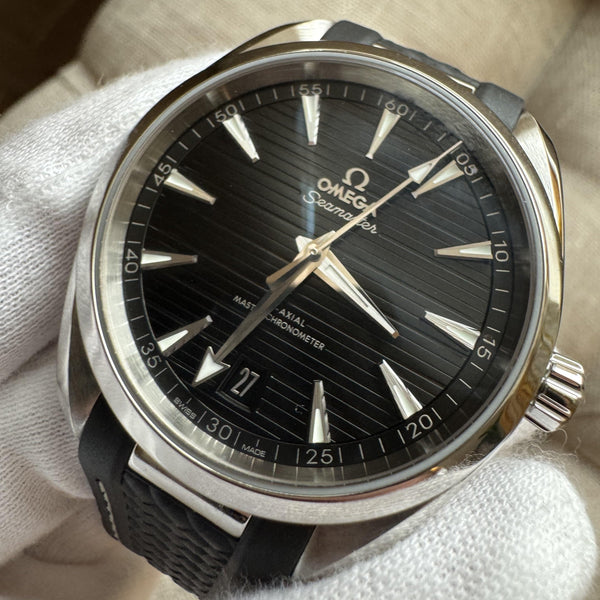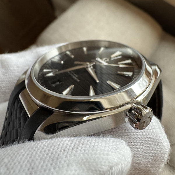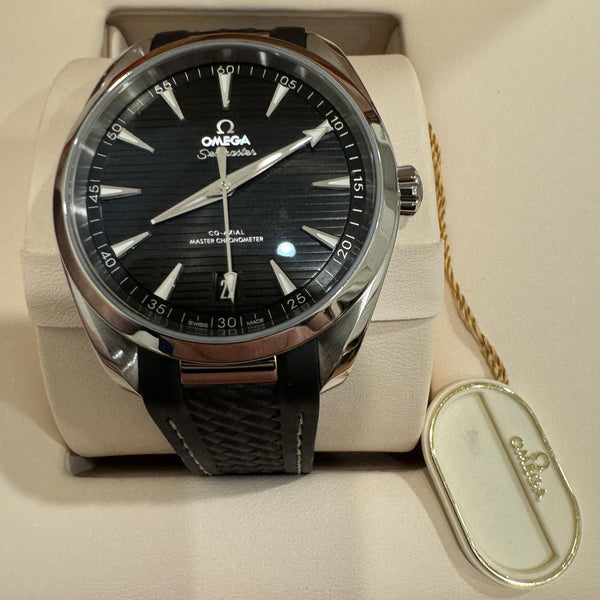 The Omega Seamaster Aqua Terra 150M seamlessly blends sporty elegance with cutting-edge technology, making it a versatile choice for both casual and formal settings. This reference, with its bold black dial and modern design, stands out as a quintessential timepiece in Omega’s prestigious lineup.